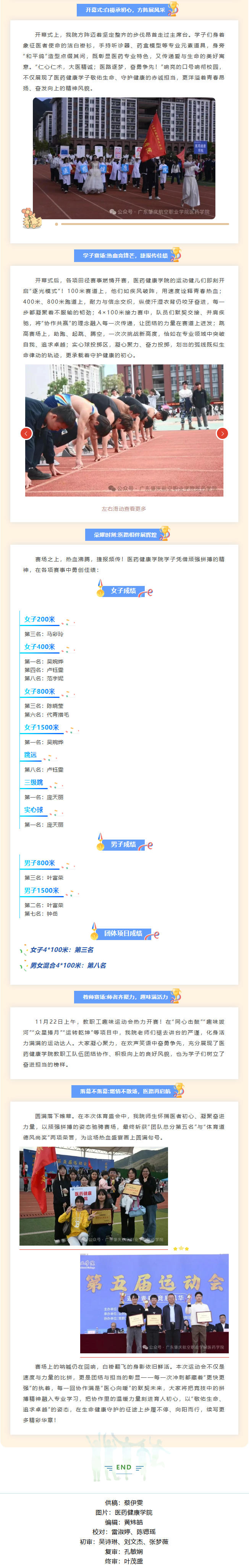 11月21日,广东肇庆航空职业学院第五届运动会盛大启幕!医药健康学院师生们怀揣“敬佑生命”的医者初心与蓬勃向上的青春热血,在赛场上奋勇拼搏,用汗水书写昂扬篇章,让医药特色与体育精神碰撞出耀眼火花!