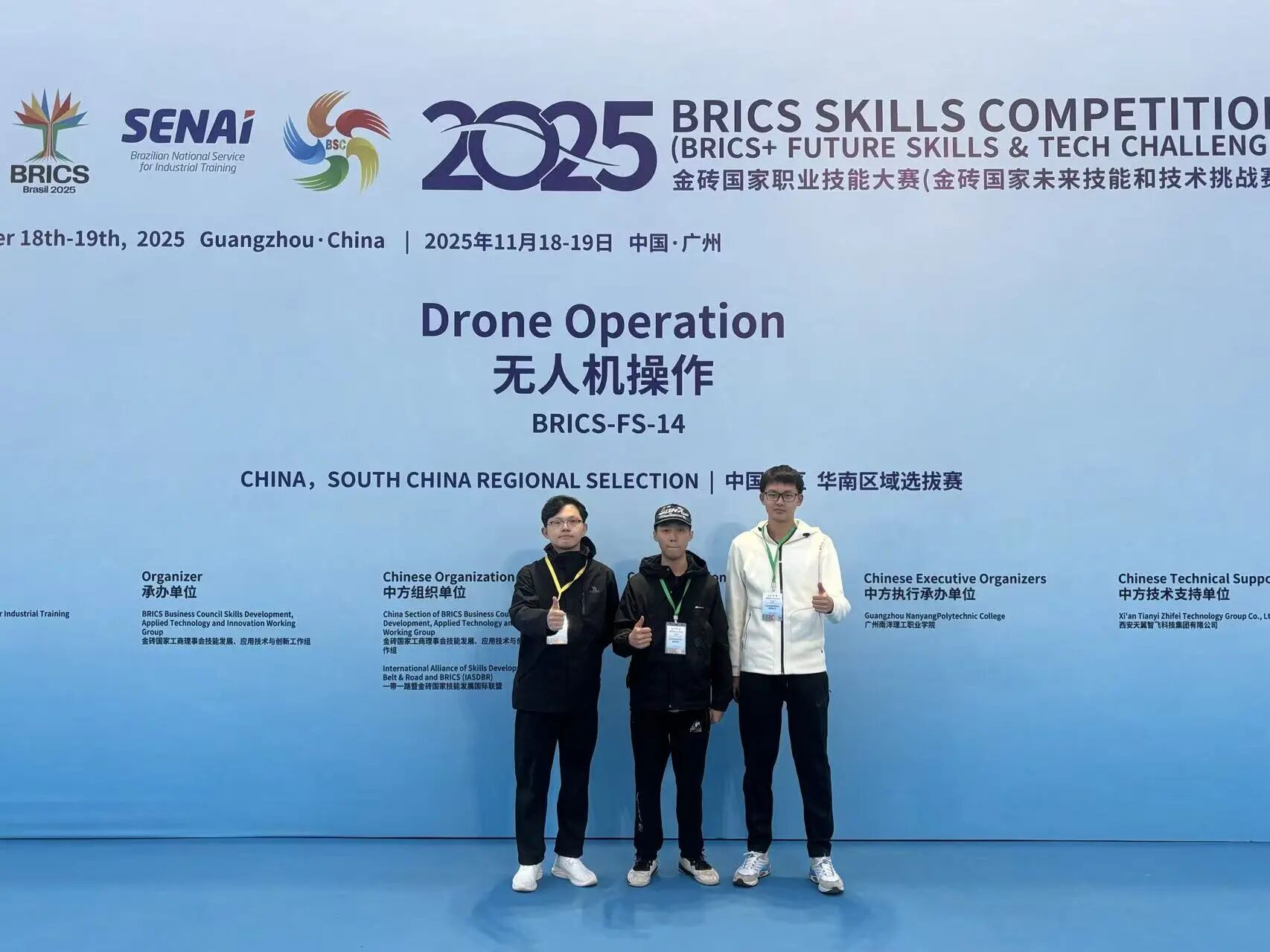 低空经济作为新质生产力发展的代表性领域之一,已成为全球竞逐的重要战略性新兴产业方向。党的二十届四中全会审议通过的《中共中央关于制定国民经济和社会发展第十五个五年规划的建议》,明确将低空经济纳入战略性新兴产业集群培育范畴,将与航空航天等产业一同加快发展。近日,我校师生在金砖国家职业技能大赛和2025年广东省无人机应用技术职业技能大赛中取得佳绩,充分彰显了我校精准对接国家战略、服务区域产业发展的育人成效。