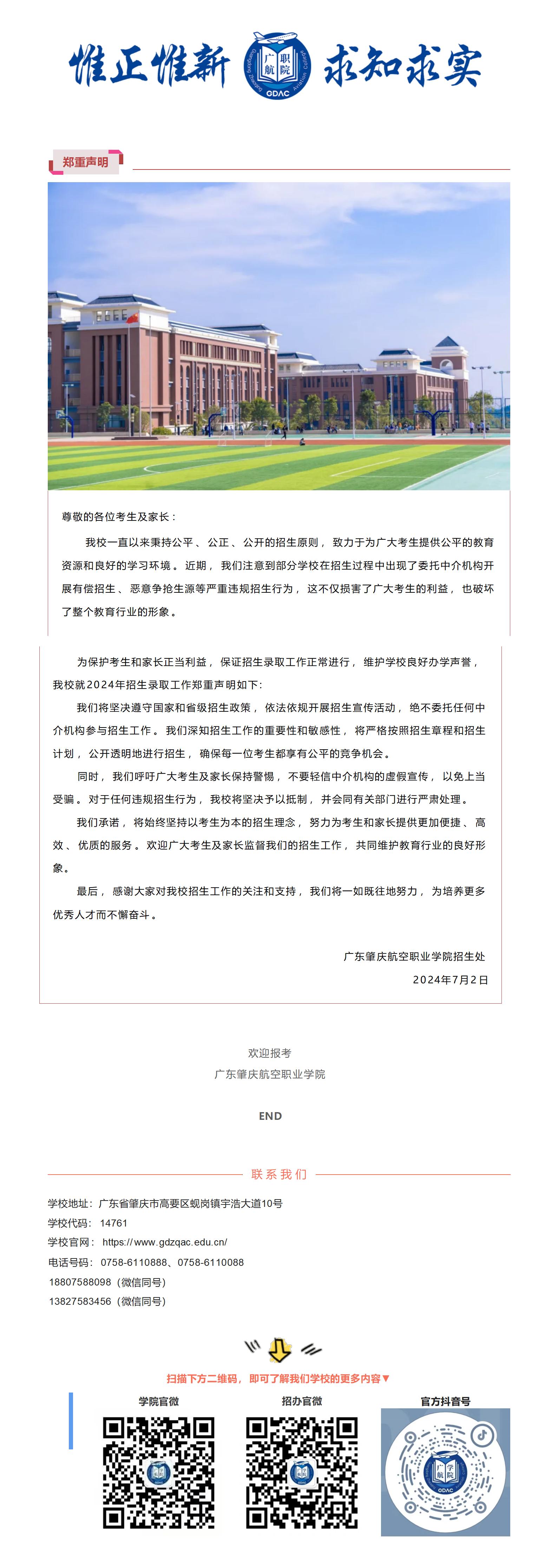 权威发布 | 广东肇庆航空职业学院2024年省外招生计划公布