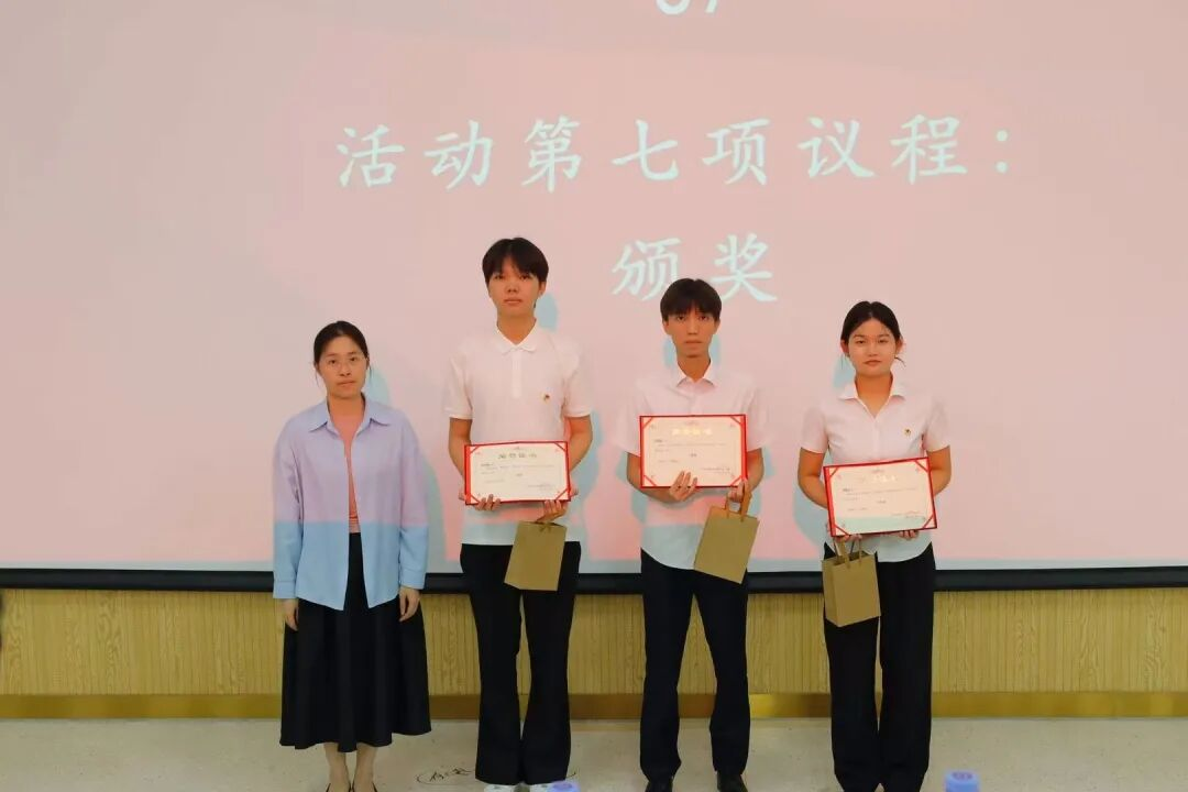 经过激烈角逐,最终评选出一等奖1 名、二等奖 2 名、三等奖 3 名及优秀奖 4 名。郭太日荣获一等奖;吴炜琪、林叶青荣获二等奖;陈思樾、郑集胜、钟嘉怡荣获三等奖;肖兰花、罗秋桐、吴家俊、谢伟帆荣获优秀奖。学校学生工作处张月盈、航空工程学院资助负责人庞博、航空服务学院专任教师张航及辅导员陈秋柠分别为获奖同学颁发证书以及奖品,并进行合影留念。