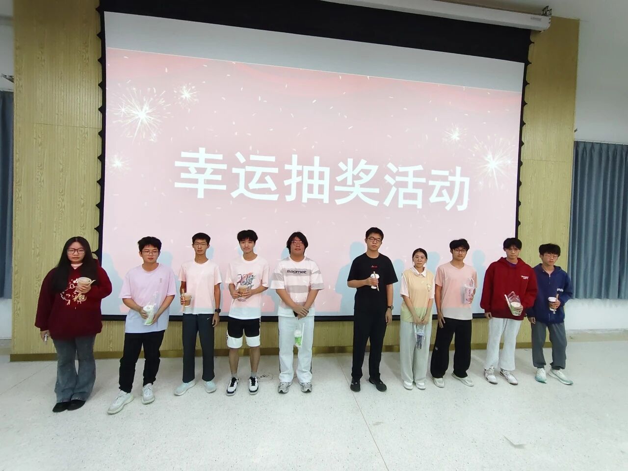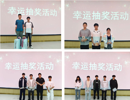 班会还特别设置了轻松愉快的“幸运抽奖”环节,增强学生的参与感。现场奖品丰富实用,既有水杯、雨伞、充电宝等日常生活用品,更有拉杆行李箱实用大奖,还贴心准备了饮品幸运奖。同学们的欢声笑语此起彼伏,惊喜与温暖交织,将现场气氛推向高潮。