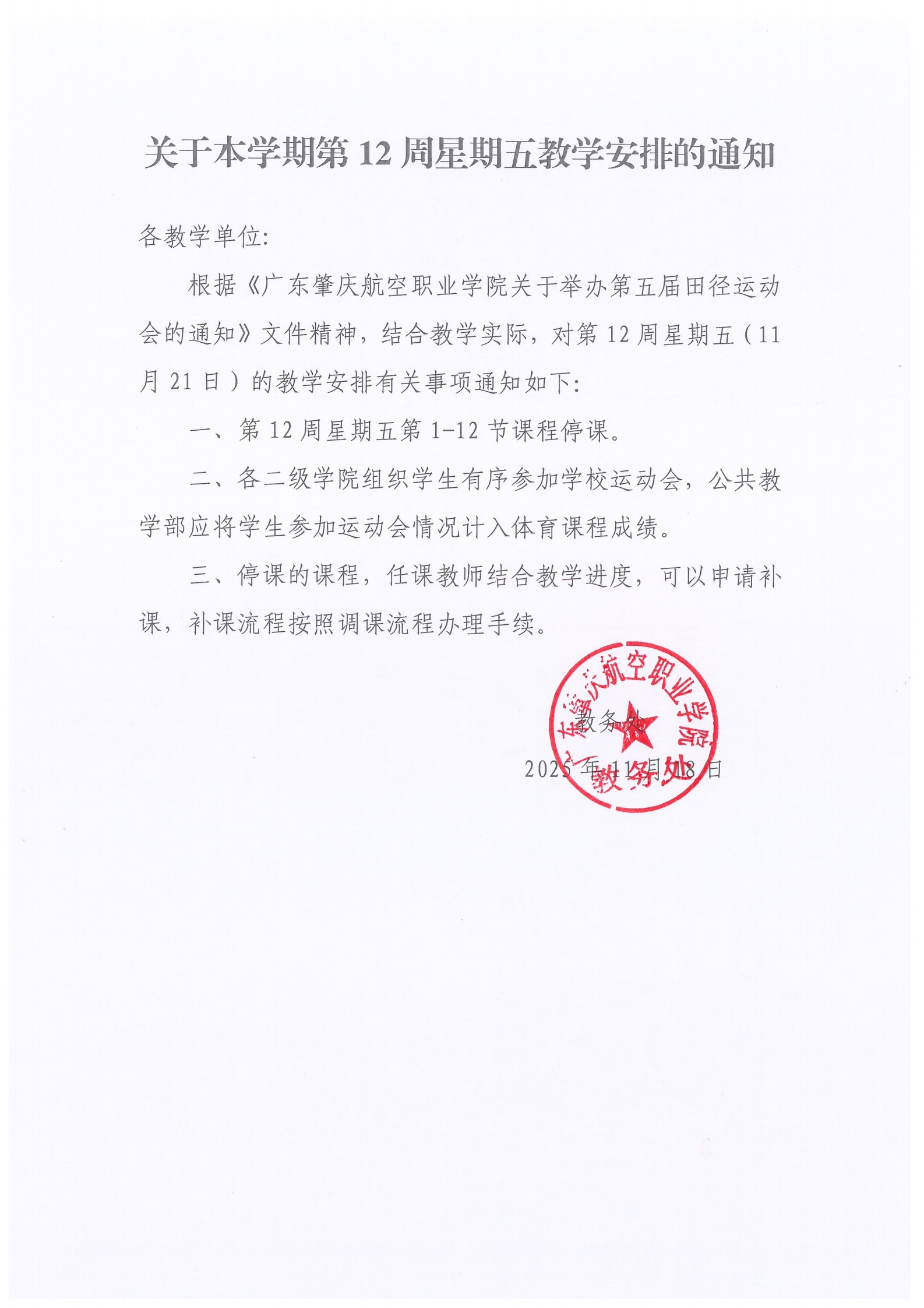 广东肇庆航空职业学院关于举办第五届田径运动会的通知