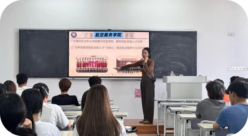 金秋送爽,丹桂飘香。9月29日,航空服务学院报告厅内座无虚席,一场为2025级空中乘务专业新生量身定制的专业宣讲会在此隆重举行。宣讲会由空中乘务教研室主任杨璐老师主讲,陈俊、马鸿飞、蒋晨玥等专业教师全程参与,与新生共绘蓝天梦想蓝图。 Part.01 多维解读空乘专业