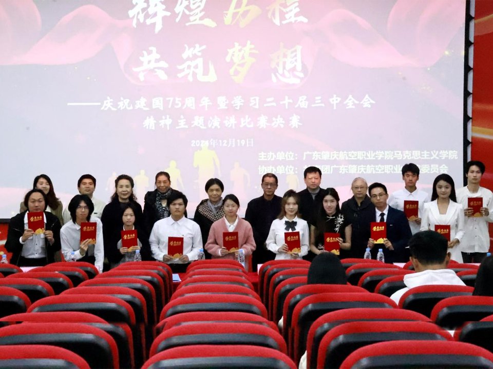 12月19日晚,由马克思主义学院主办的“辉煌历程 共筑梦想——庆祝建国75周年暨学习二十届三中全会精神”主题演讲比赛决赛在学术报告厅举行。本次比赛是思想政治理论课实践教学中的一环。校党委书记陈晓鹤、评建规划部处长舒捷、学生工作部处长李爱琴、航空服务学院