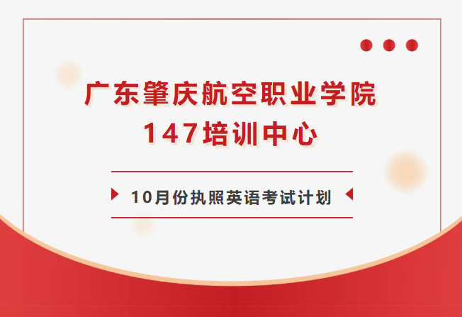 广东肇庆航空职业学院147培训中心2025年10月份执照英语考试计划
