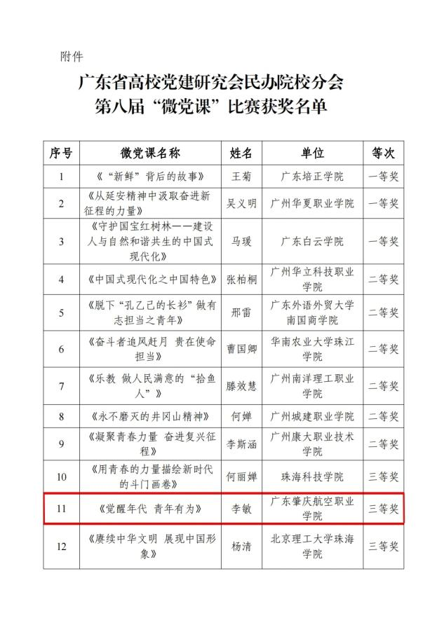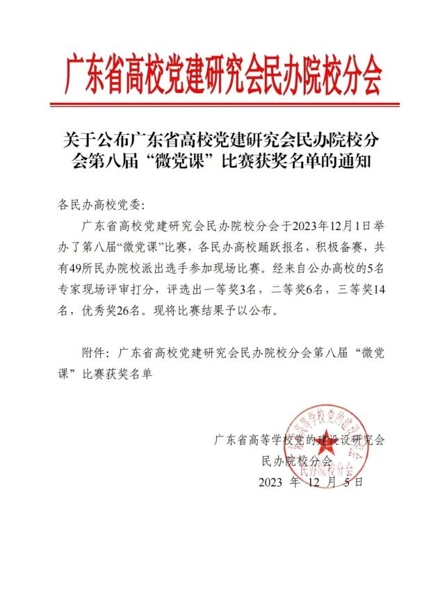 近日,广东省高校党建研究会民办院校分会公布了第八届“微党课”比赛获奖名单,