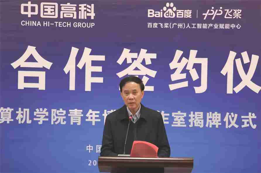另外,中国高科集团股份有限公司的代表吴瑞龙先生以及百度飞桨的教育事业部代表莫业锋先生分别发表了讲话。他们详细介绍了各自公司的情况和未来的发展规划,并表达了对此次合作的期待和信心。