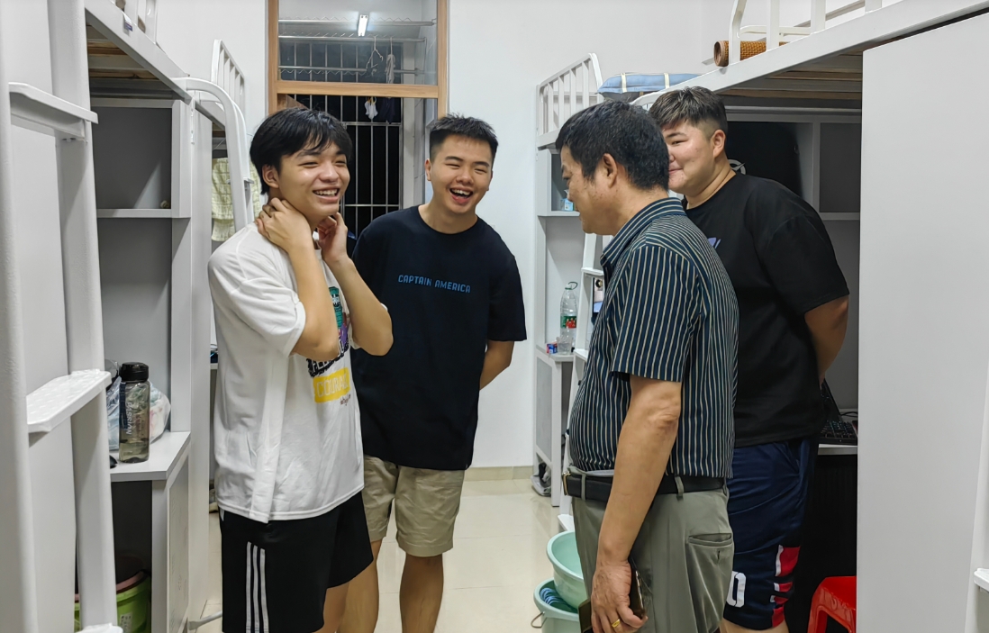 色彩斑斓的九月,正是萌新入学之时。为帮助我院全体新生更好更快地融入新集体与新环境,2023年9月15日晚,我院院长时有忠、新生辅导员邹智琳、老师曾森漩、陆泳涛、陈灶金以及2023级新生班助一同走进新生宿舍,对新生进行走访慰问。