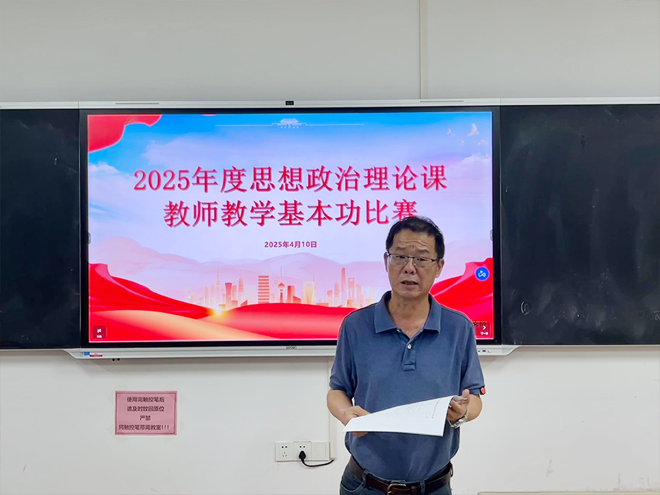为深入贯彻党的二十大精神和习近平总书记关于思想政治理论课建设的重要指示精神,深化新时代学校思政课改革创新,坚持“以赛促学,以赛促教、以赛促改”,加强思政课教师队伍建设,根据《广东省教育厅关于举办2025年度高校思想政治理论课教师教学基本功比赛的通知》文件要求,4月10日举办了2025年度春季思想政治理论课教师教学基本功比赛,比赛由教学科研部主办,直属马克思主义学院党支部及马克思主义学院承办。教务处处长张生果、学校督导张菁、马克思主义学院院长赵玉军、教务处钟翠冰、直属马克思主义学院党支部委员王倩、马克思主义学院专任教师肖良健作为评委出席活动。