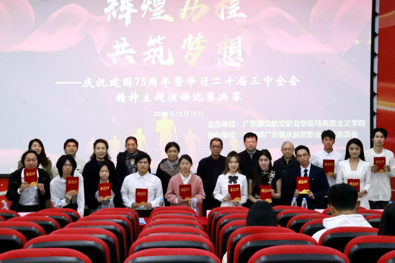 12月19日晚,由马克思主义学院主办的“辉煌历程 共筑梦想——庆祝建国75周年暨学习二十届三中全会精神”主题演讲比赛决赛在学术报告厅举行。本次比赛是思想政治理论课实践教学中的一环。校党委书记陈晓鹤、评建规划部处长舒捷、学生工作部处长李爱琴、航空服务学院院长高玲、马克思主义学院院长赵玉军、校团委副书记王超等出席了此次活动。
