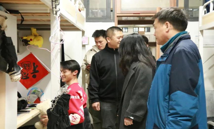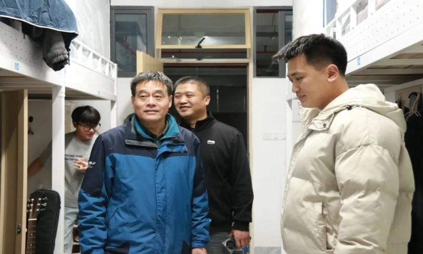 走进宿舍楼,每到一间宿舍,院领导和辅导员们都亲切地与同学们交谈,询问他们的学习、生活情况,以及是否存在困难和需要帮助的地方。老师们的关怀如同冬日里的阳光,瞬间温暖了整个宿舍。