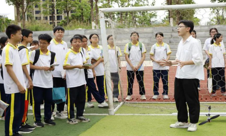 本网讯(低空应用技术学院院团委宣传部梁如诗)研学之旅,邂逅航空之美。无人机研学,开启科技探秘之旅。在科技飞速发展的今天,无人机作为前沿科技的代表,正以其独特的魅力吸引着无数人的目光。4月24日下午,低空应用技术学院携手宋隆中学师生开展了一场无人机竞技体验的研学活动,让同学们近距离感受了无人机的神奇与魅力。
