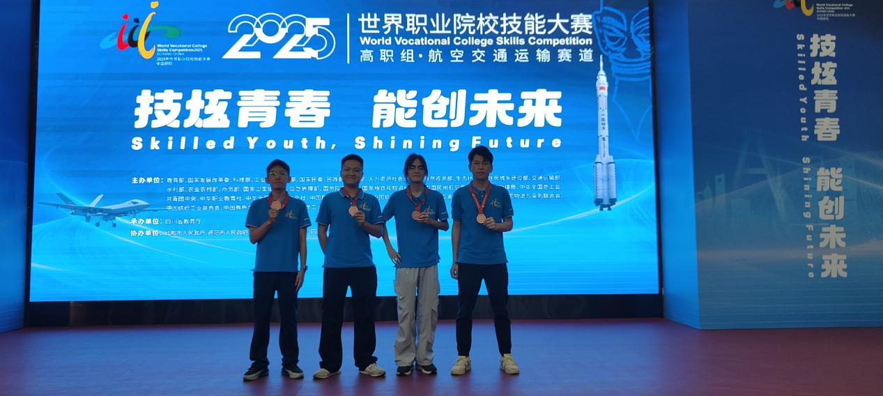 2025年8月27日,2025年世界职业院校技能大赛高职组航空交通运输赛道争夺赛落下帷幕。广东肇庆航空职业学院参赛团队凭借 “无人机AI智能检测与损伤修理” 项目斩获铜奖。此次大赛集结了全国56支队伍同台竞技,这些队伍均为各省航空运输类高职院校经校赛、省赛层层选拔而出的强队,竞争尤为激烈。这一成绩的取得,既是我校职业教育成果的硬核彰显,更是我校学子技能实力的生动证明。同时,本次国赛获奖也是我校又一次新的突破。