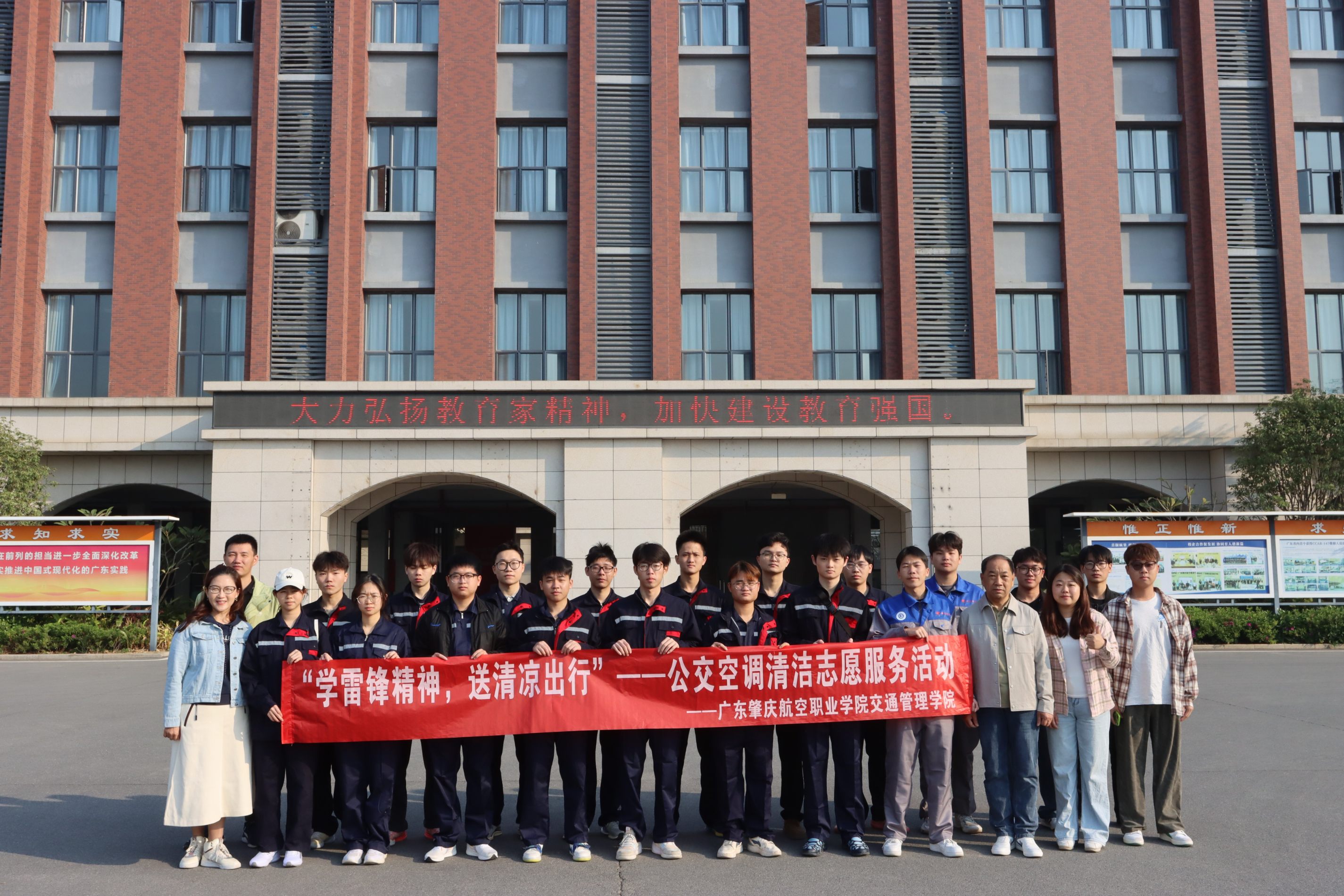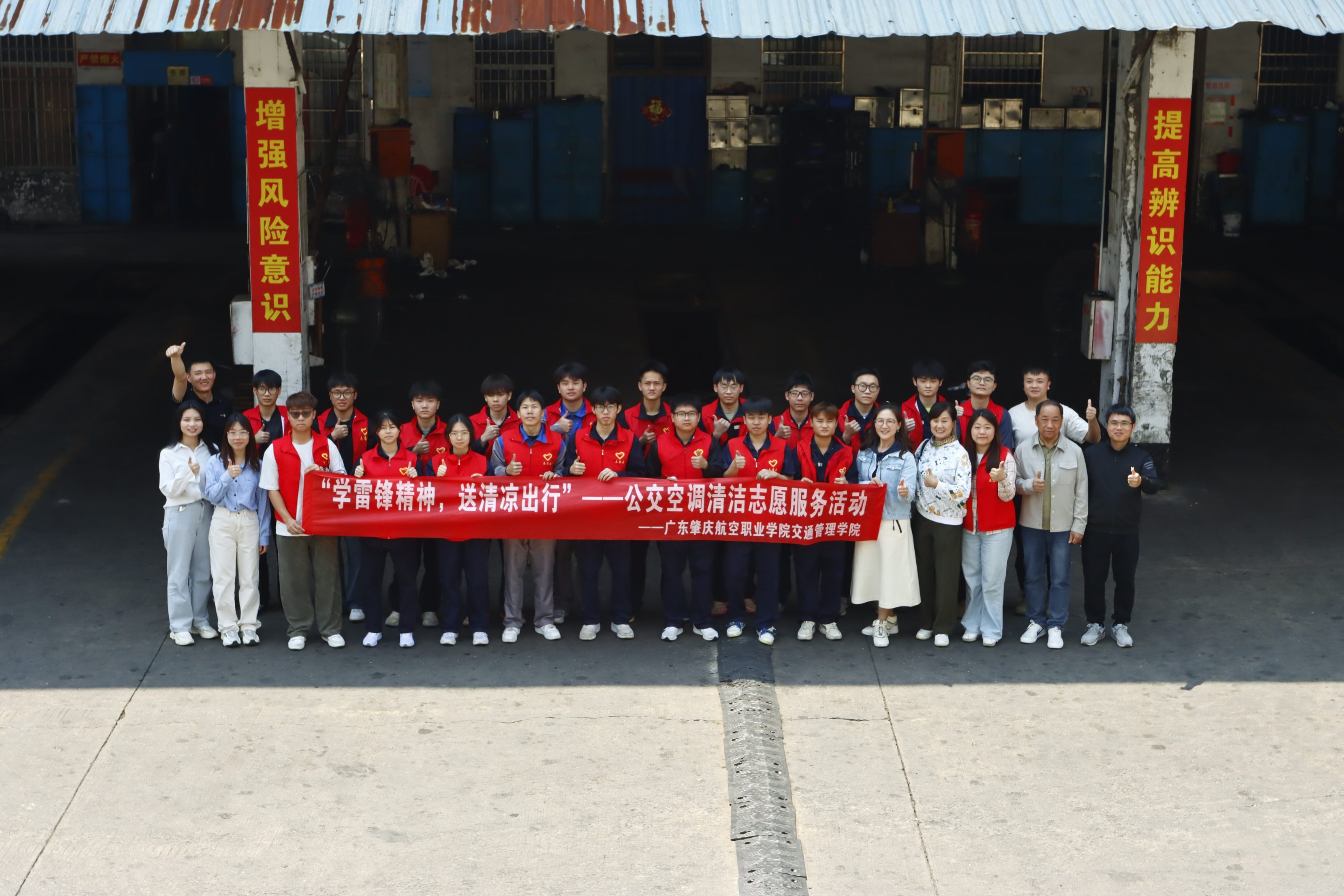 在春意盎然的三月,我们迎来了学雷锋纪念日。为传承雷锋精神,践行志愿服务理念,广东肇庆航空职业学院交通管理学院团委于 2025 年 3 月 22 日组织了一场公交空调清洁志愿服务活动。由习小兵、林治准、许冬焱等老师担任指导老师,交通管理学院二级团委负责老师蔡佳慰带队,16位新能源汽修专业的志愿者们积极参与其中,为公交车送去清凉,为城市交通注入温暖。