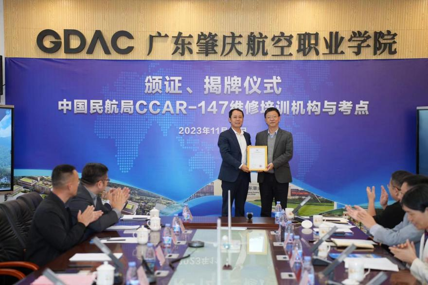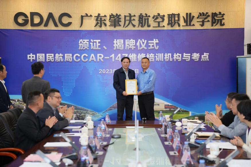 黄董表示,从2019 年 3 月首次向民航中南管理局汇报 147 建设意向到现今成功获批,历经四年风风雨雨,终有所获,离不开民航局领导的支持鼓励、离不开行业专家的专业指导、离不开业内单位的无私帮助、离不开 147 培训中心全体同仁的不懈努力。获得 CCAR-147 维修培训机构许可资质及 CCAR-66 民航维修人员执照考点资格,是我们作为民航院校正式迈进航空行业的第一步。我们将充分发挥专业院校的教育资源优势,着力培养“技术精湛、作风优良、保障有力”的机务人员,通过专业人才的大力引进、实训设施的高标准建设,更好保障培训质量,为民航业高质量发展提供源源不断的人才支撑。惟正惟新,求知求实,我们始终在路上!