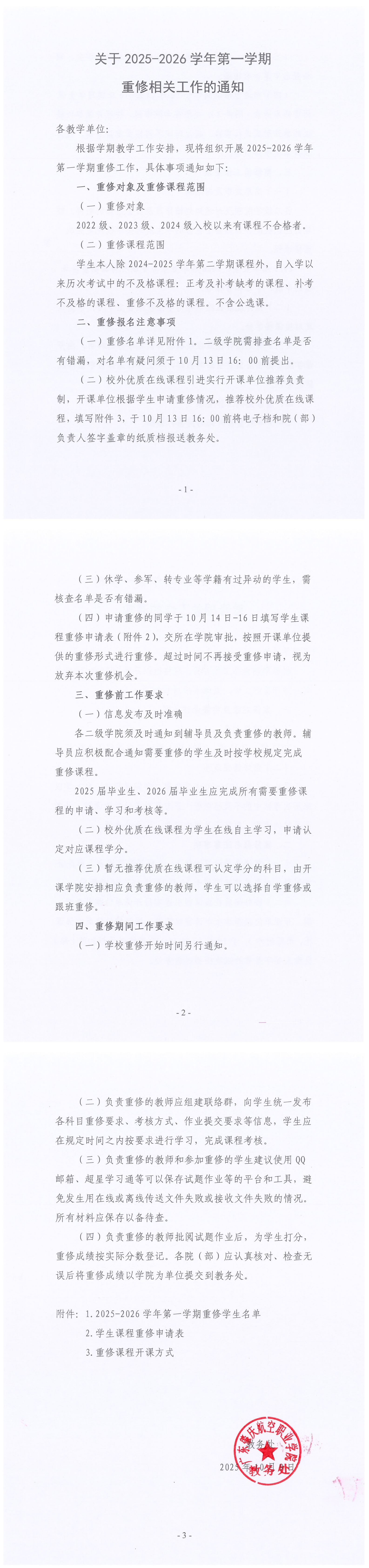 关于2025-2026学年第一学期重修相关工作的通知-附件