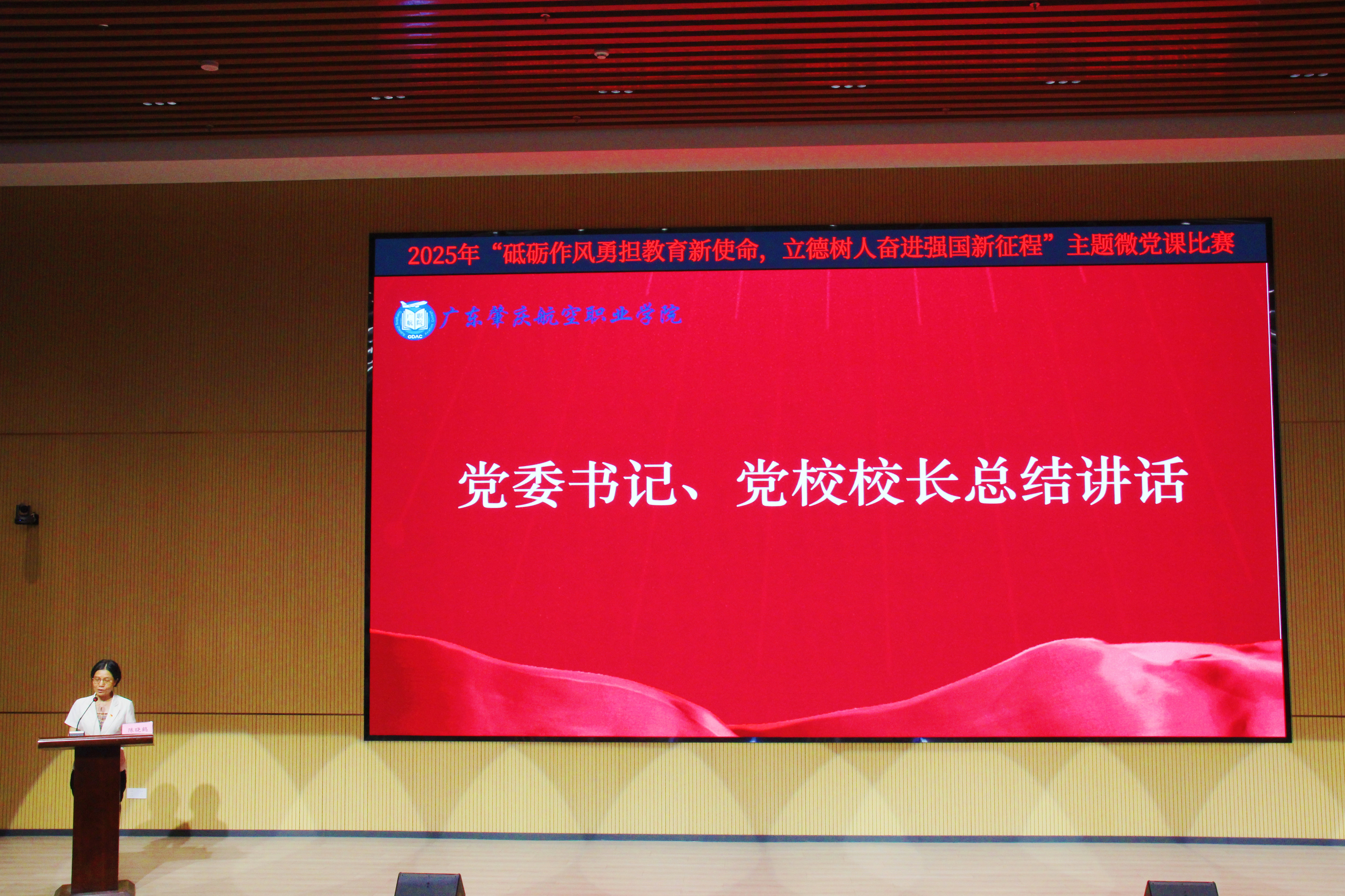 党委书记陈晓鹤作总结讲话。她指出,本次微党课比赛是学校党建工作的生动实践和有效探索。她强调,全体党员要坚持“顶天立地”,深化党课内容;力求“入脑入心”,创新党课形式;注重“知行合一”,推动实践见效。全体党员要将比赛激发出的热情与智慧,切实转化为砥砺作风、勇担使命、立德树人的具体行动和扎实成效。