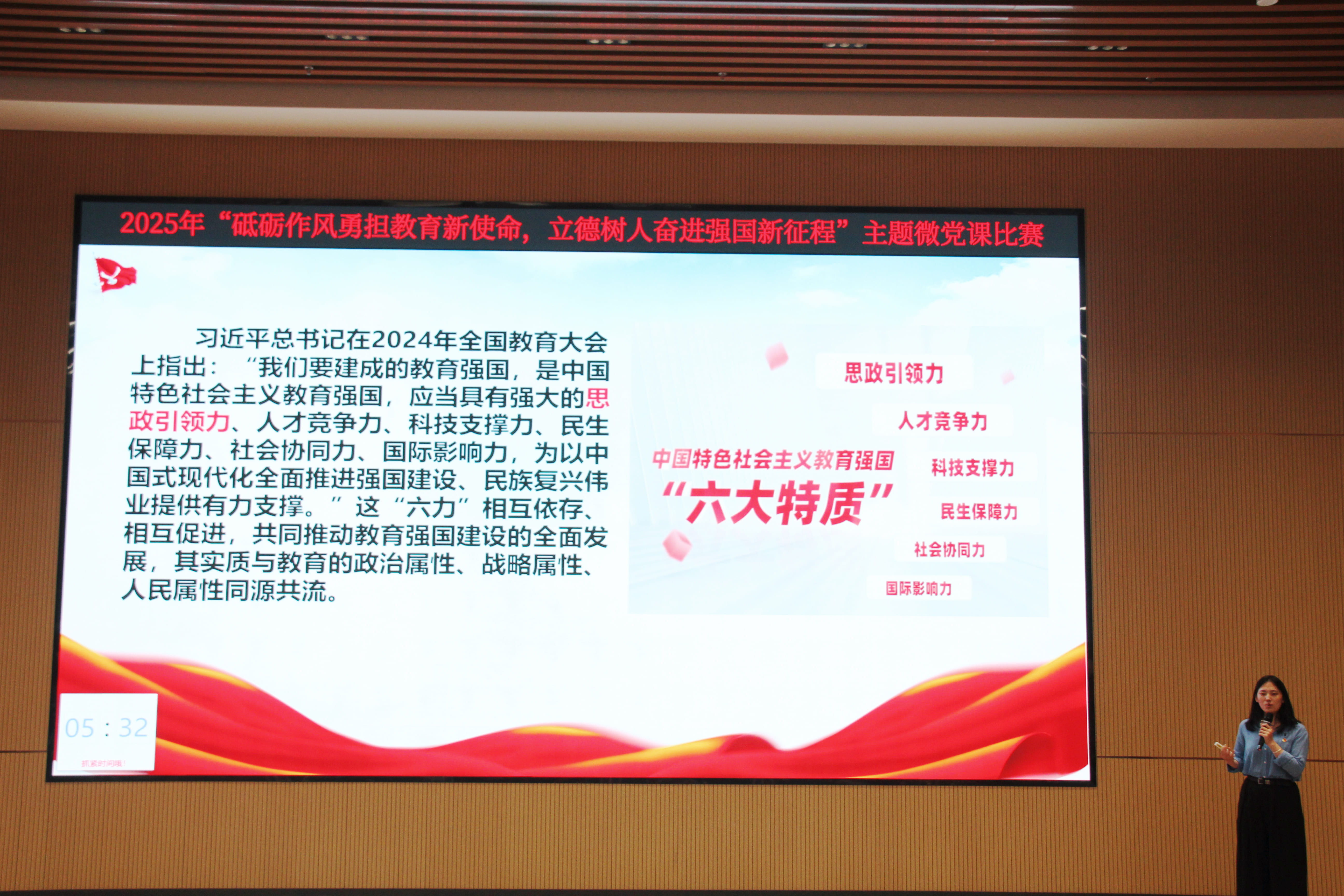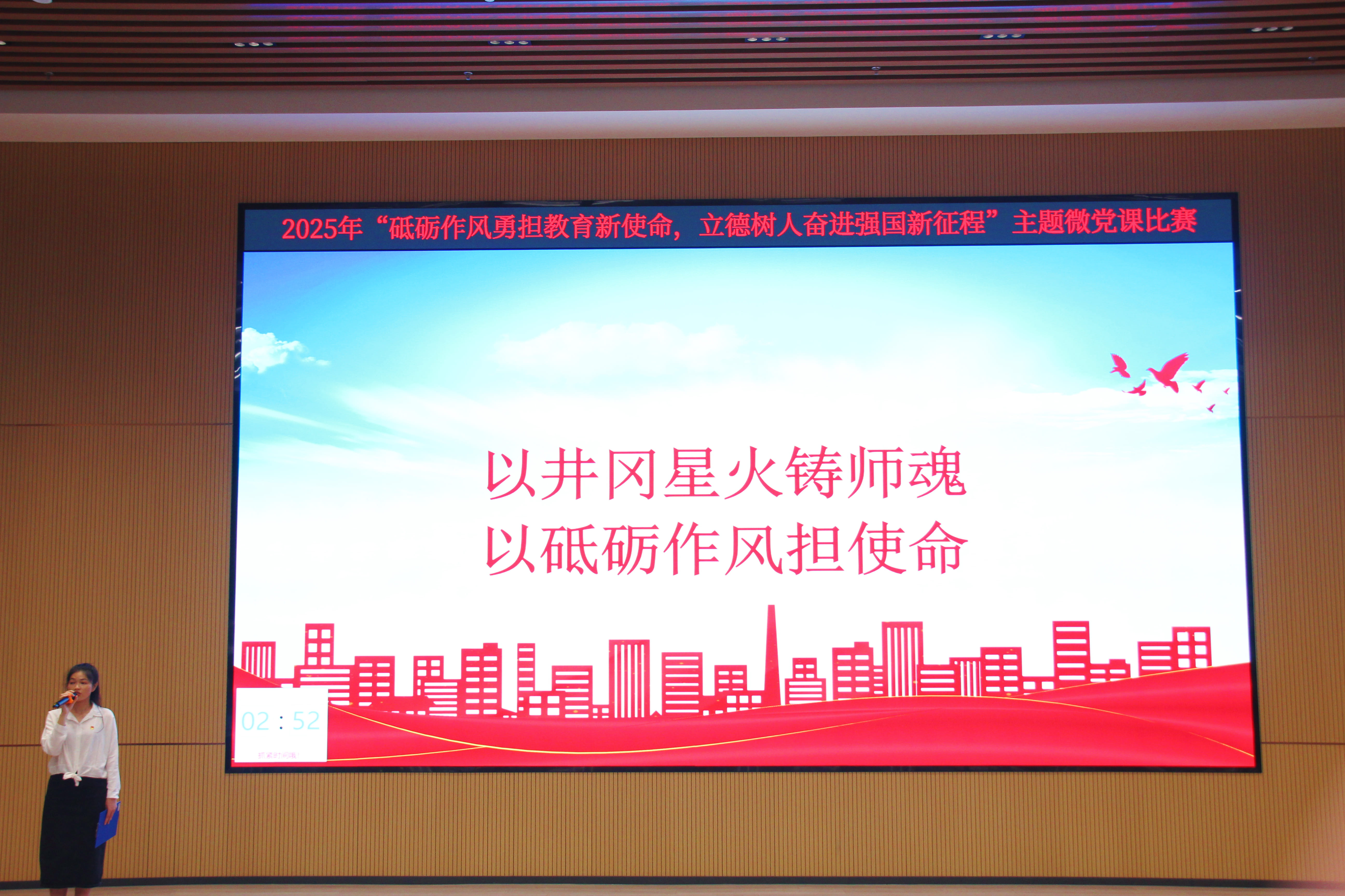 为深入学习贯彻习近平新时代中国特色社会主义思想,持续推进作风建设,紧扣立德树人根本任务。2025年10月11日,我校举办“砥砺作风勇担教育新使命,立德树人奋进强国新征程”主题微党课比赛。