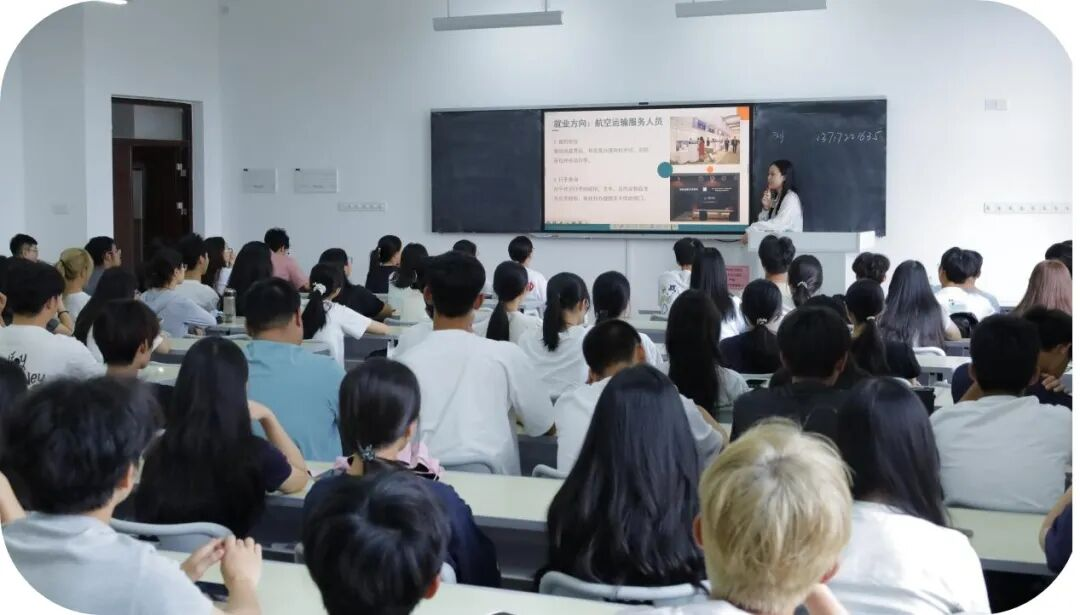 此次宣讲会,由民航运输教研室主任刘桂娴老师回顾了航空服务学院在民航人才培养领域的历程,从学科建设的逐步完善到教学资源的持续升级,从与各大机场的深度合作到为行业输送大批优质人才的亮眼成果,让新生们快速了解学院的发展方向;同时,她还特意提及往届优秀学子入职香港机场、广州白云机场等知名机场后,凭借扎实专业能力快速成长的案例,以此激励新生。刘老师结合专业特点,为新生们初步勾勒出大学3年的成长路径:大一打好民航基础理论与行业认知的根基,大二聚焦技能实训与证书考取,大三通过实习实践对接岗位需求,清晰指引出未来的民航发展之路。