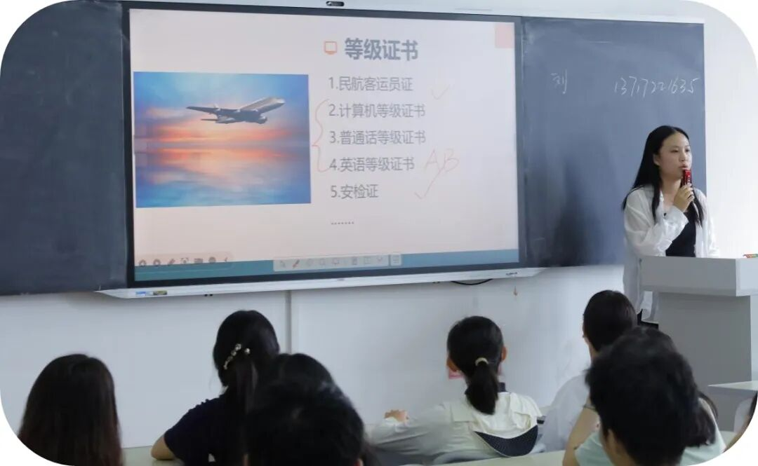 在培养模式上,黄老师重点解读了“岗证课融合”的特色体系。她介绍,学生在校期间将系统学习《机场运行管理》《航空货运实务》《民航安全检查》等核心课程,同时可考取民航安全检查员证书、民航客运员证书、急救员证书等职业技能认证。通过“理论+实践+证书”的三维培养模式,实现“毕业即适配岗位”的培养目标,为就业筑牢竞争力。