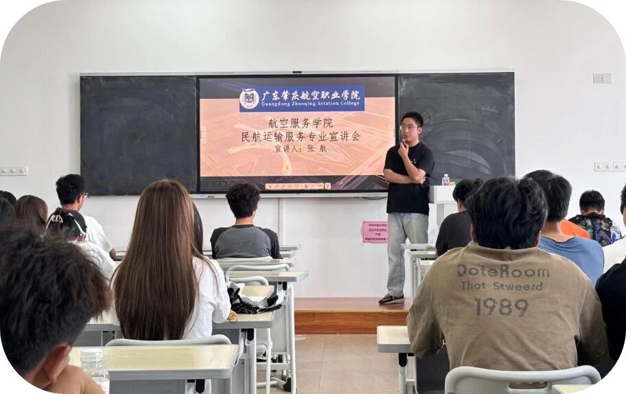 随后,由专业负责人张航老师宣讲会围绕就业前景、专业介绍、师资队伍、就业风采及专业答疑等内容展开。通过“理论+案例”的方式,张老师详细讲解了专业核心课程体系与知识重点,帮助新生同学们清晰把握未来三年的学习脉络。同时,结合行业发展动态,分享了民航行业的就业趋势和前景,分析了与行业需求相契合的职业发展路径,使新生不仅深入了解专业内容,还能感受到民航领域的广阔前景与无限潜力。