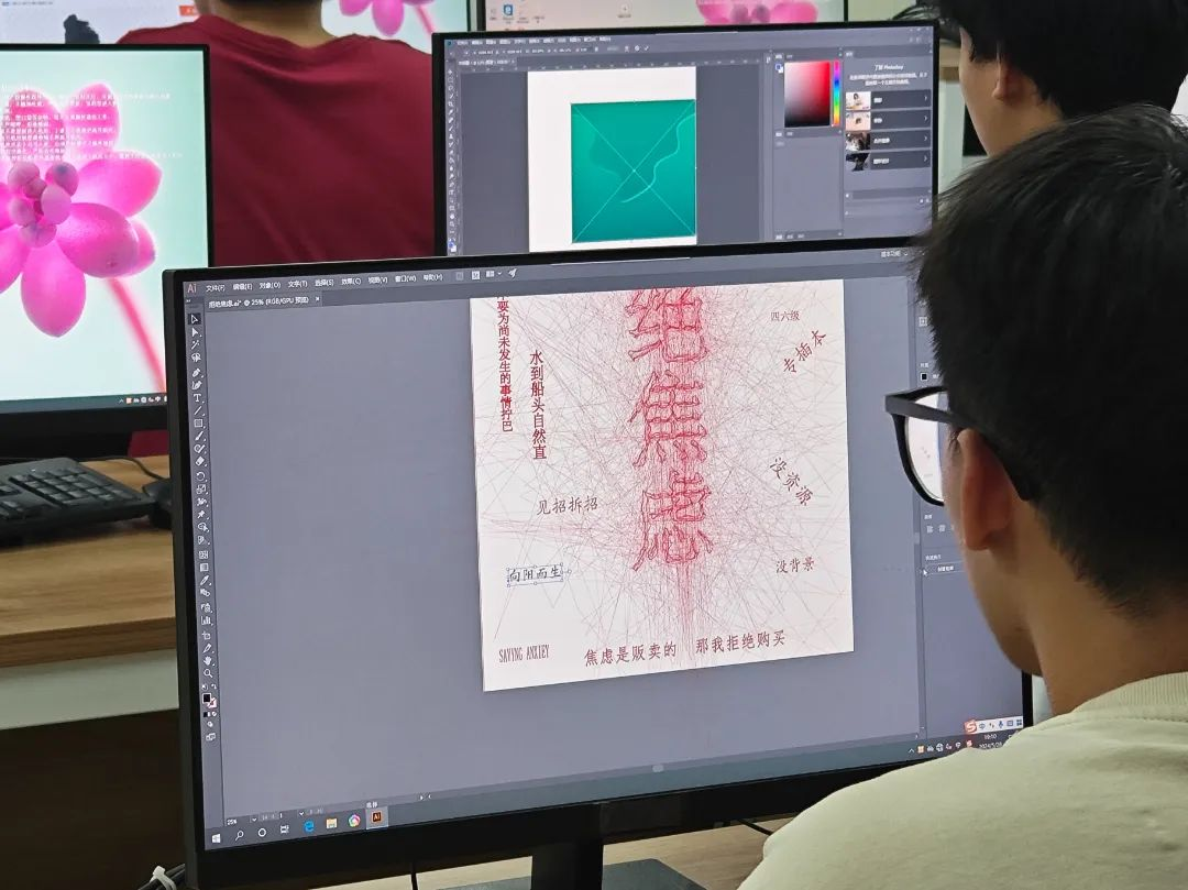 学校各个学院23级的优秀选手踊跃报名参赛。比赛开始前计算机学院陆泳涛老师现场讲解了比赛规则,本次海报设计比赛创作主题可选范围分别是“春节”、“六一儿童节”、“端午节”、“国庆节”、“心理健康教育”。